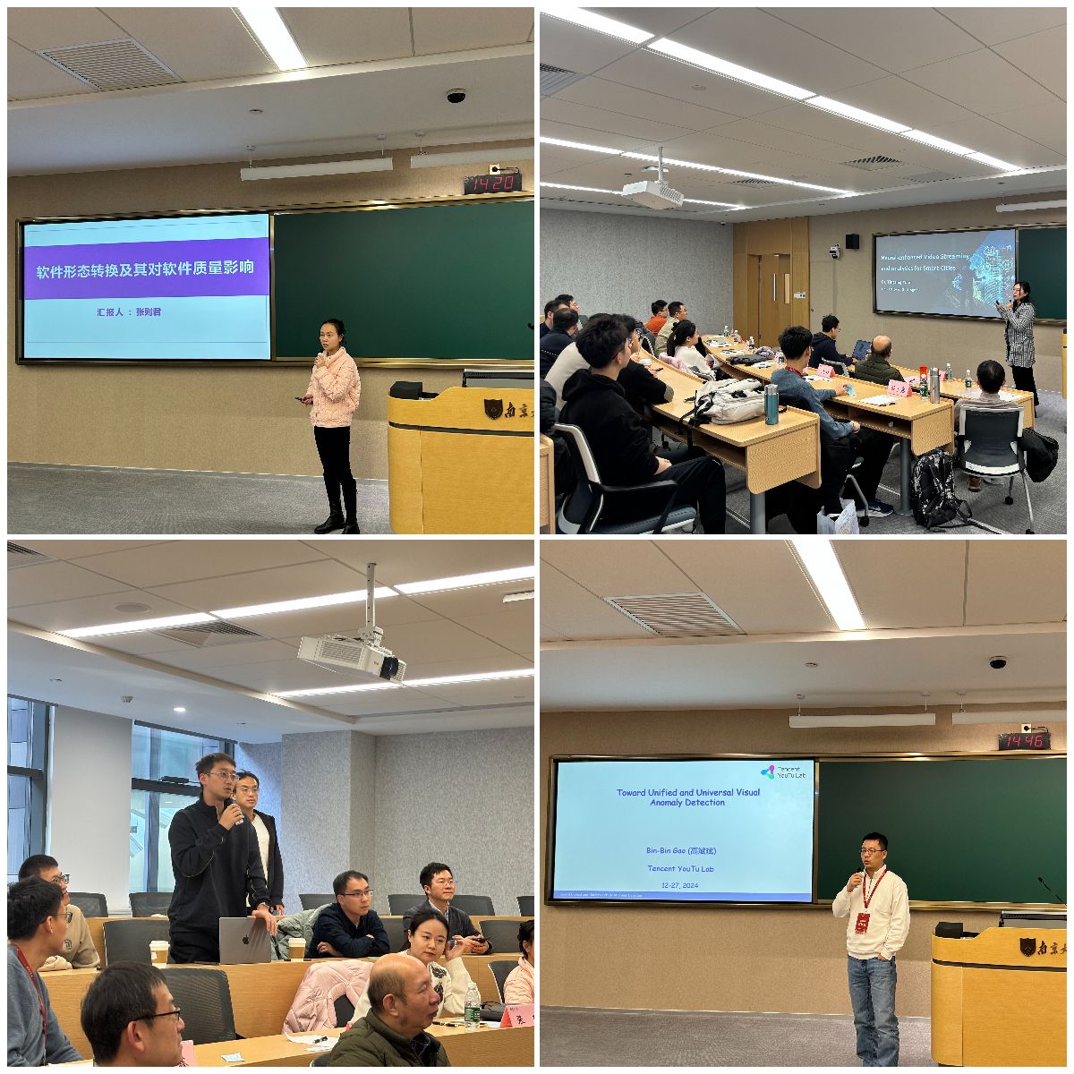 参会的青年学者们也在论坛上分享了他们的研究方向和研究进展,他们的汇报包含机器学习、通信与人工智能、大语言模型、计算机视觉等多个领域,展示了优秀的学术水平和创新思维。在互动环节,学院的教师代表们结合自身的科研和教学经验,对青年学者们的研究提出了许多宝贵的意见和建议。员工代表们也积极提问,与青年学者们近距离交流,感受前沿学术研究的魅力,拓宽自己的学术视野。