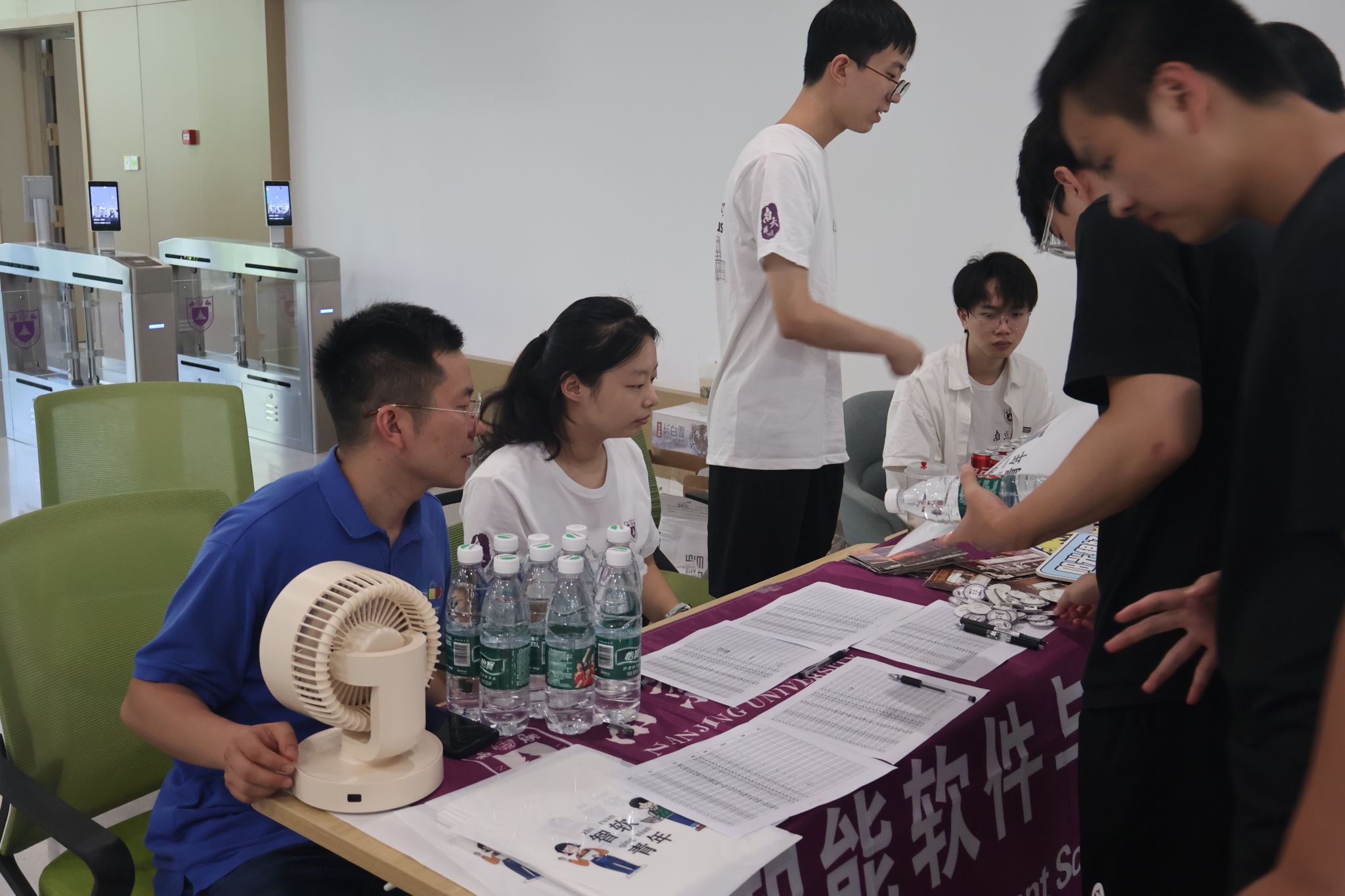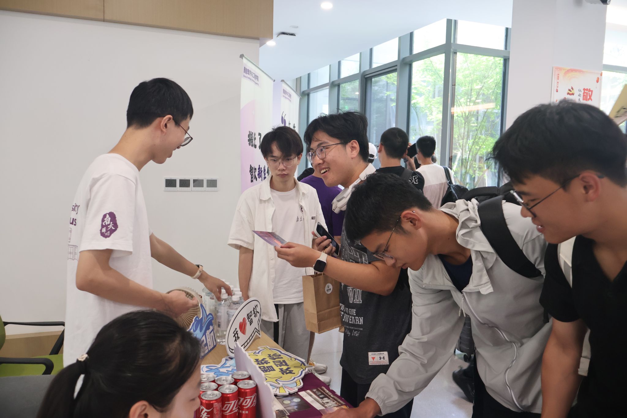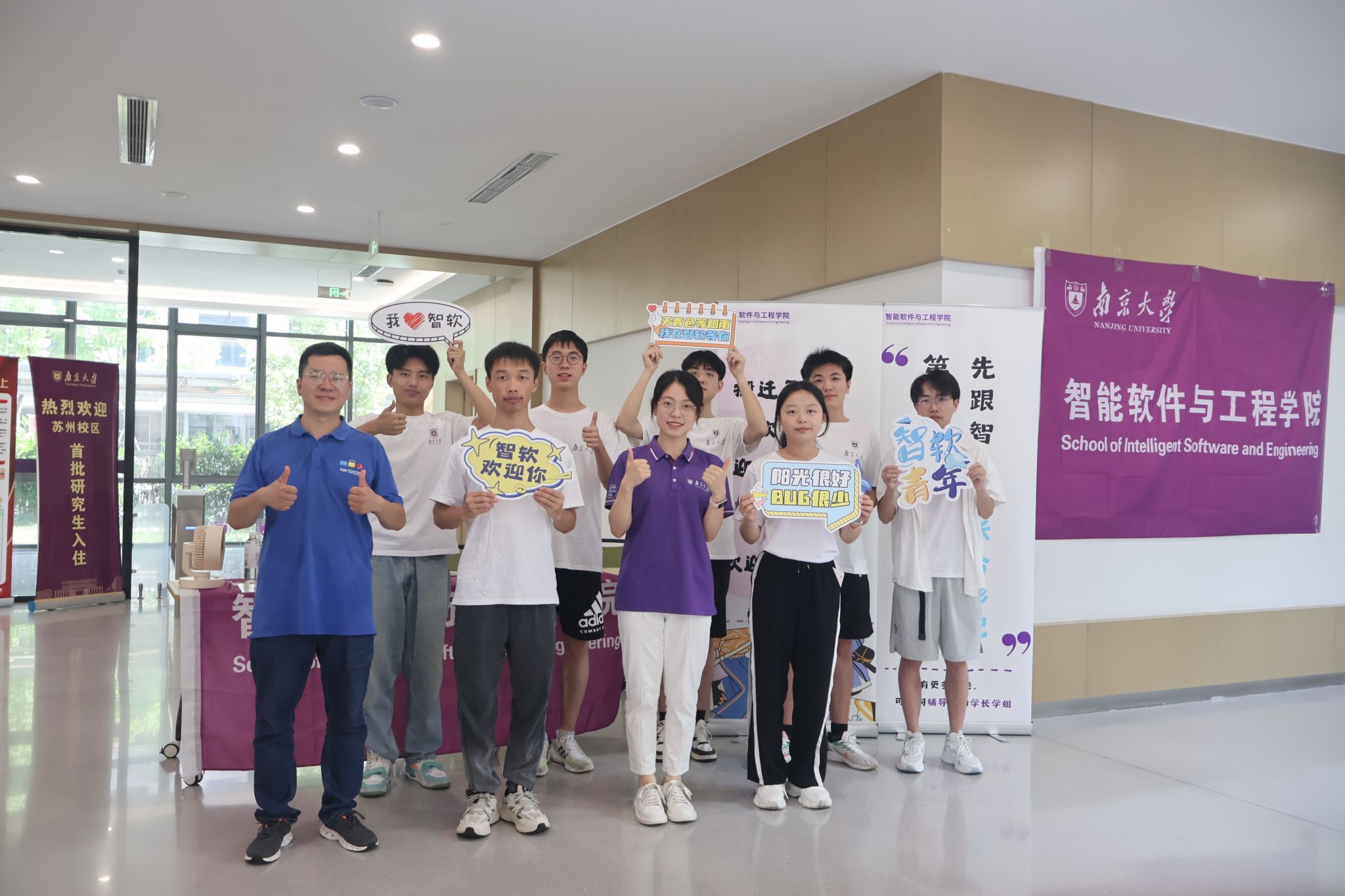 作为苏州校区的首批使用者之一,智软2022级的同学们主动担任志愿者,在仁园丙楼大厅中设置迎新打卡点,积极投入到对学弟学妹搬迁工作的支持中。在学院摊位上,学长学姐用心准备了打卡易拉宝、手举牌,以及由学长学姐摄影作品定制的系列明信片、学院系列文创产品等,摊位旁有学院的专属打卡点,学长们手持相机为新生拍照打卡,留下最美的智软初印记。