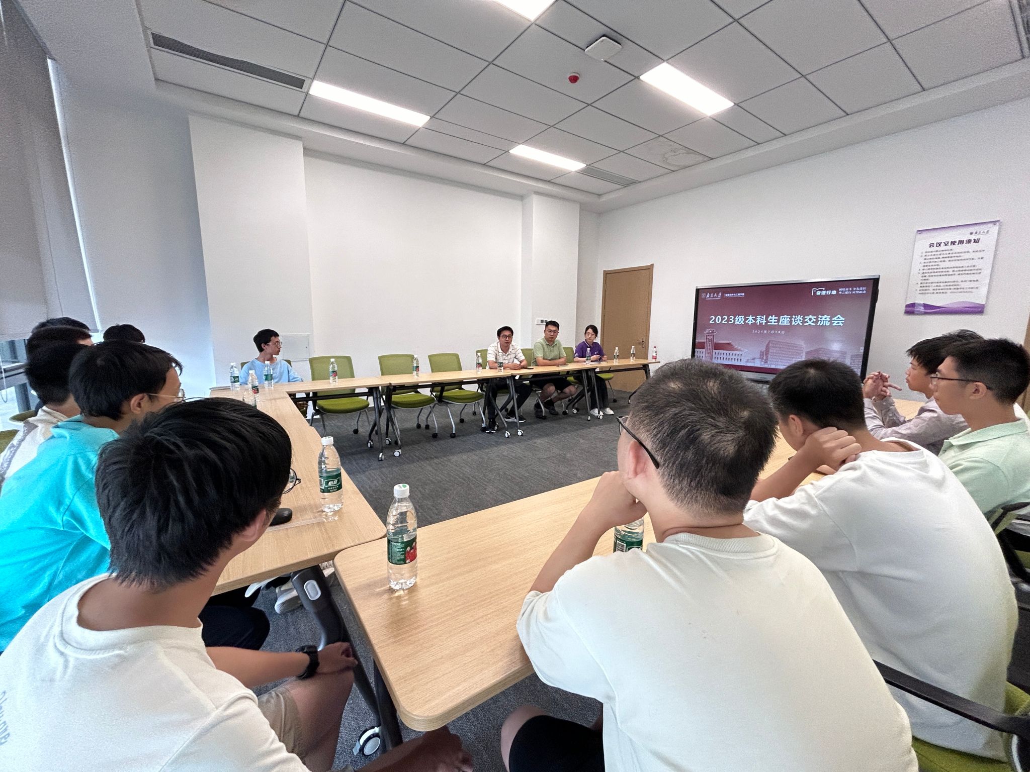 为了让同学们提前熟悉学习生活、方便新生答疑解惑,7月19日,bw必威西汉姆联官网助理教授,博士生导师钮鑫涛老师、教务秘书林竹老师、辅导员杨佳静老师与2023级本科生开展了首场座谈交流会,老师们对学院课程安排、学业发展、员工活动等方面内容进行了介绍,以简明清晰而又不失幽默的语言鼓励同学们迎接未来的挑战。面对更深层次的课程,同学们需要更多的时间投入,学校和学院为同学们提供了优质的硬件条件和强大的团队团队。在座谈会上,同学们踊跃提问、积极参与,进一步了解今后的学习生活。