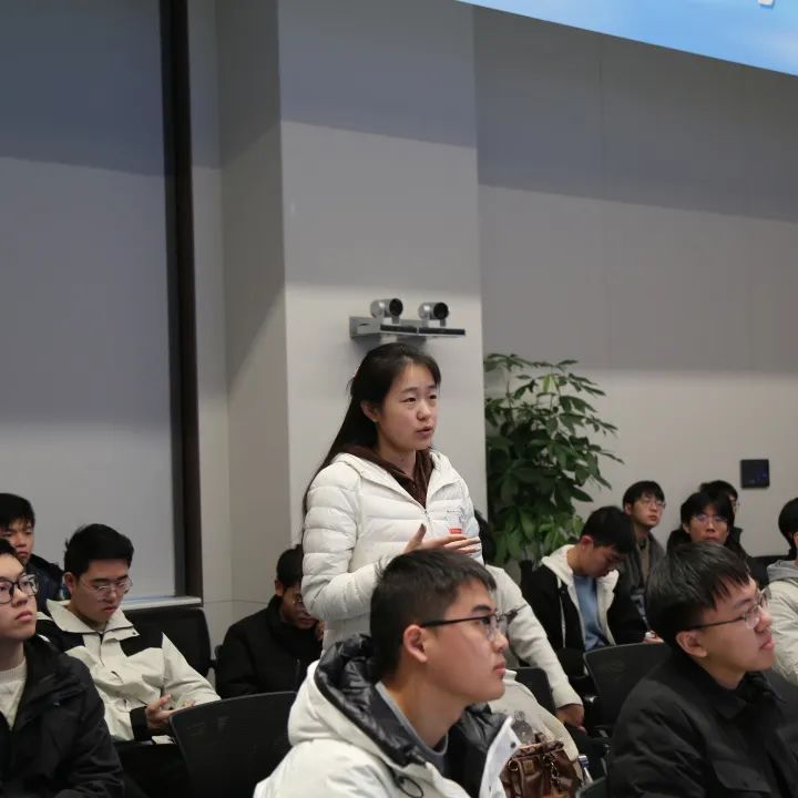随后,华为团队成员与同学们展开深入座谈交流。小艺业务部的刘永生分享了小艺的强大功能和相关AI课题研究;HarmonyOS终端服务团队的吴凡则深入讲解了HarmonyOS的发展历程与前沿技术。陈寒女士还为同学们介绍了华为的实习岗位,并提供了极具价值的职业发展指导。同学们积极与座谈嘉宾交流,就职业规划等问题展开热烈讨论,现场气氛活跃。