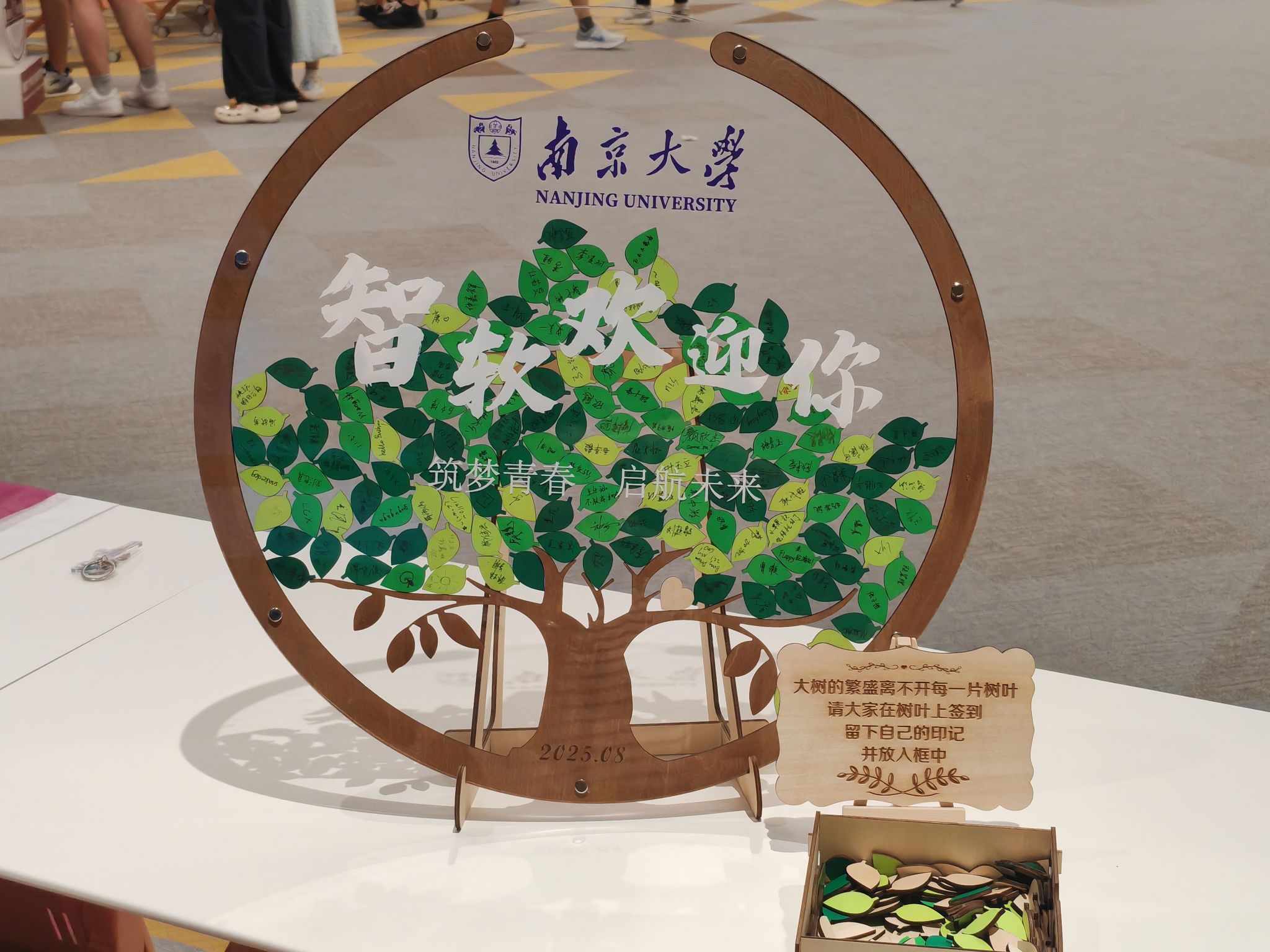 在别具一格的“智软同心树”活动中,同学们将写有自己姓名的绿叶投入树形相框,汇聚成枝繁叶茂、生机盎然的“智软树”。一片片新绿相融,不仅是成长的见证,更象征着2024级智软学子将在这里团结一心、共同成长。有同学欣喜地表示:“感觉自己就像这片叶子,终于找到了未来三年扎根成长的沃土。”